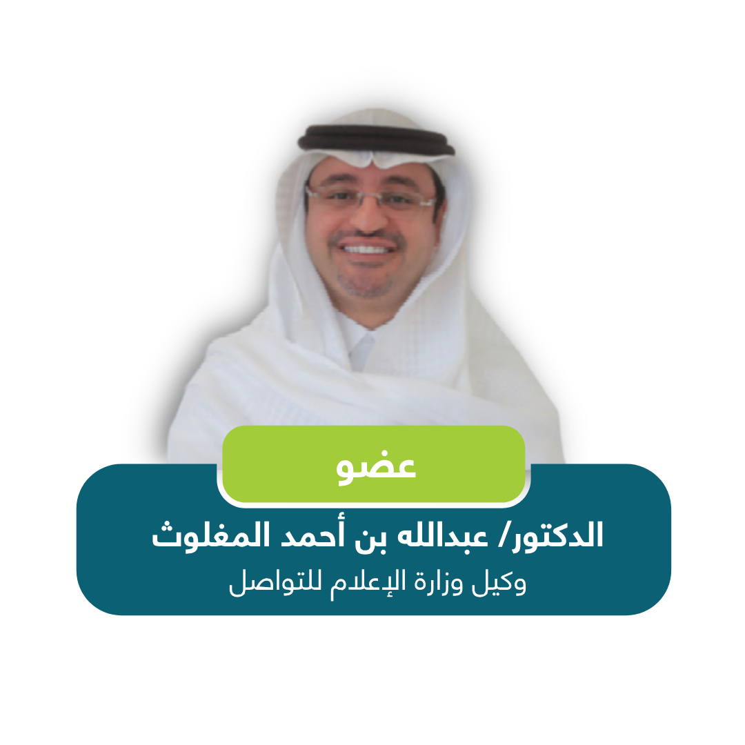 | معالي الدكتور/ عبدالله بن أحمد المغلوث | مساعد وزير الإعلام | عضو | ثابتة بالصفة الاعتبارية بموجب برقية سمو ولي العهد رقم 117589 وتاريخ 3/5/1438ه |