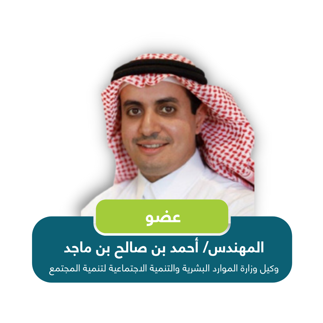 | الدكتور / ناصر بن محمد القحطاني | وكيل وزارة الموارد البشرية والتنمية الاجتماعية للتأهيل والتوجيه الأجتماعي | عضو | ثابتة بالصفة الاعتبارية بموجب برقية سمو ولي العهد رقم 117589 وتاريخ 3/5/1438ه |